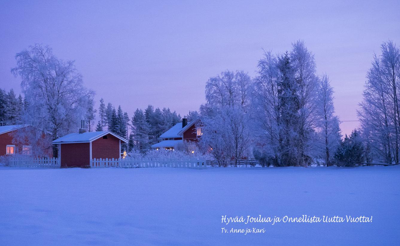 Le luci basse dei giorni più corti dell'anno, gli alberi coperti di galaverna, le finestre illuminate nelle case rosse di legno, il manto perfetto della neve nella grande radura e nel lago: questo è il Natale del Nord poco sotto il circolo polare artico. Le fotografie ce le mandano i nostri cari amici Kari, Anne, Annukka, Kimmo, Juha e Antti. Noi ricambiamo gli auguri pubblicandole nel blog.